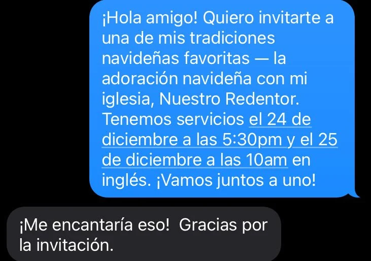 On Wednesday, December 24, we will gather for special candlelight services (in English and Spanish) as we celebrate that holy night in which Jesus came down from heaven to earth for us.